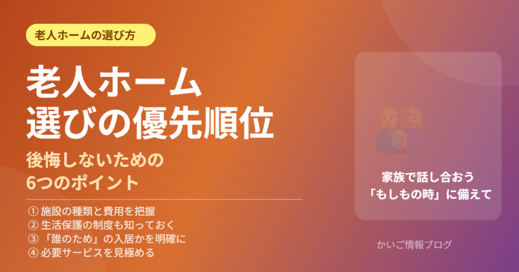 老人ホーム選びの優先順位とは?後悔しないための6つのポイント